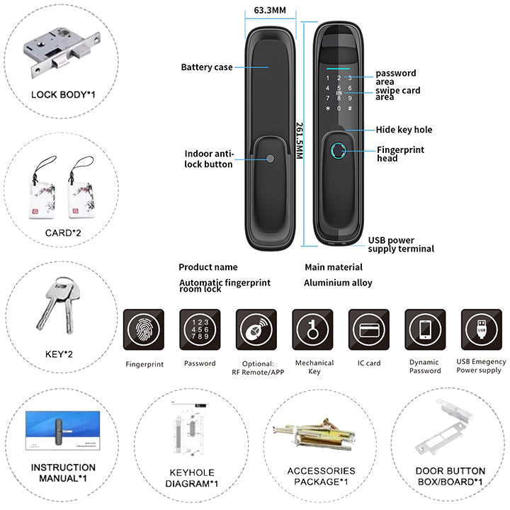 Unlock Modes- Fingerprint, Lock Code, Physical Key